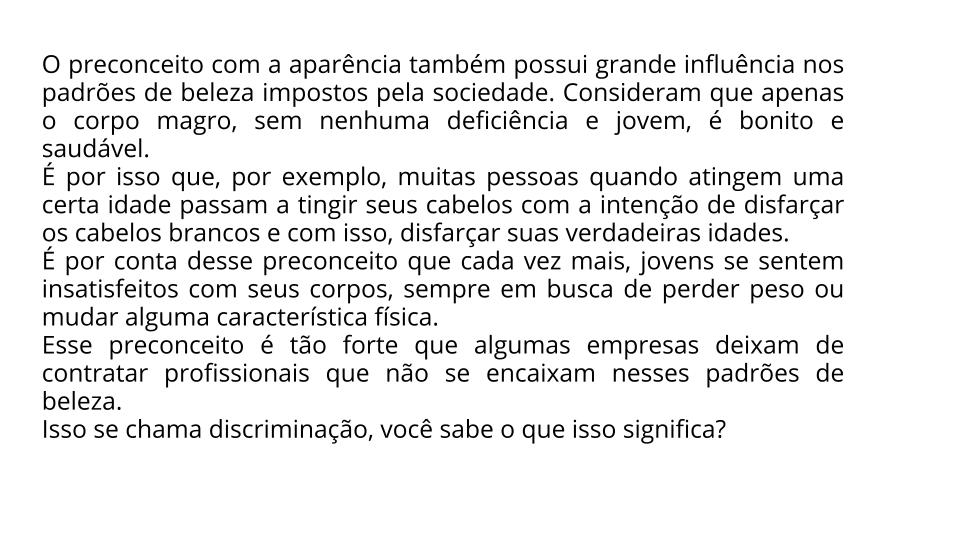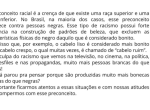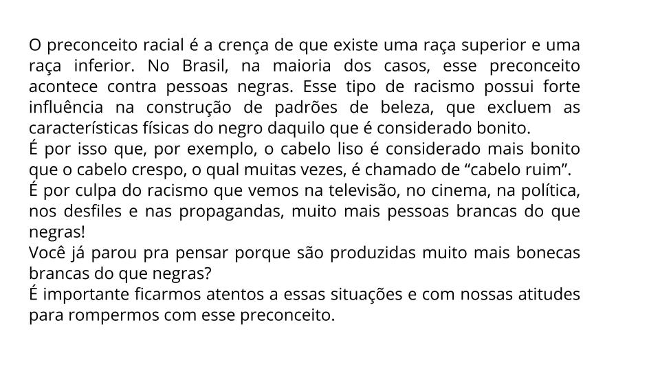 Categorias Recurso Educacional PRECONCEITOS – PADRÕES DE BELEZA – DISCRIMINAÇÃO PRECONCEITO RACIALPRECONCEITO COM APARÊNCIA ← ONDE ESTÃO OS ANIMAIS NOTURNOS? → BRINQUEDOS ANTIGOS